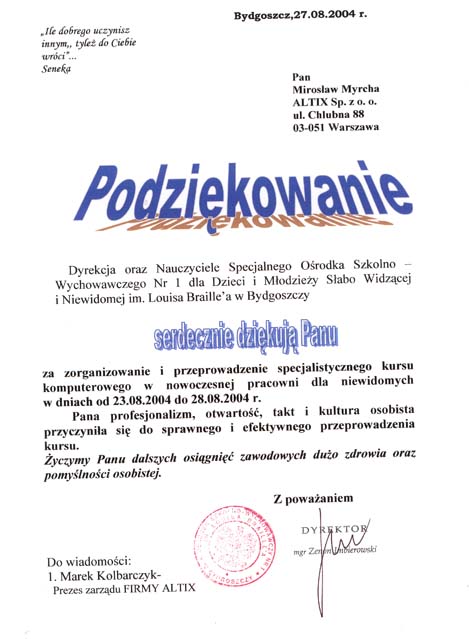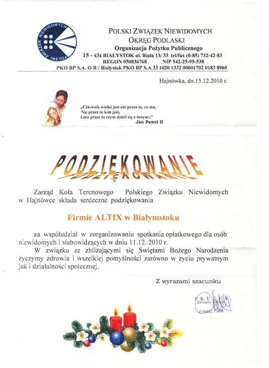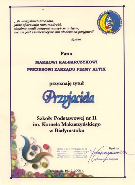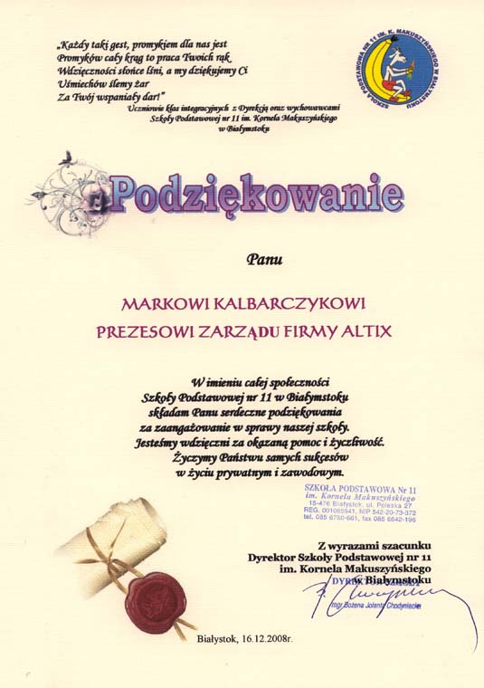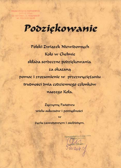 Przedstawiamy Państwu nasze wyróżnienia i podziękowania, które są dla nas bardzo ważne i motywujące. Jest nam bardzo miło, że tak często jesteśmy doceniani. Serdecznie dziękujemy!