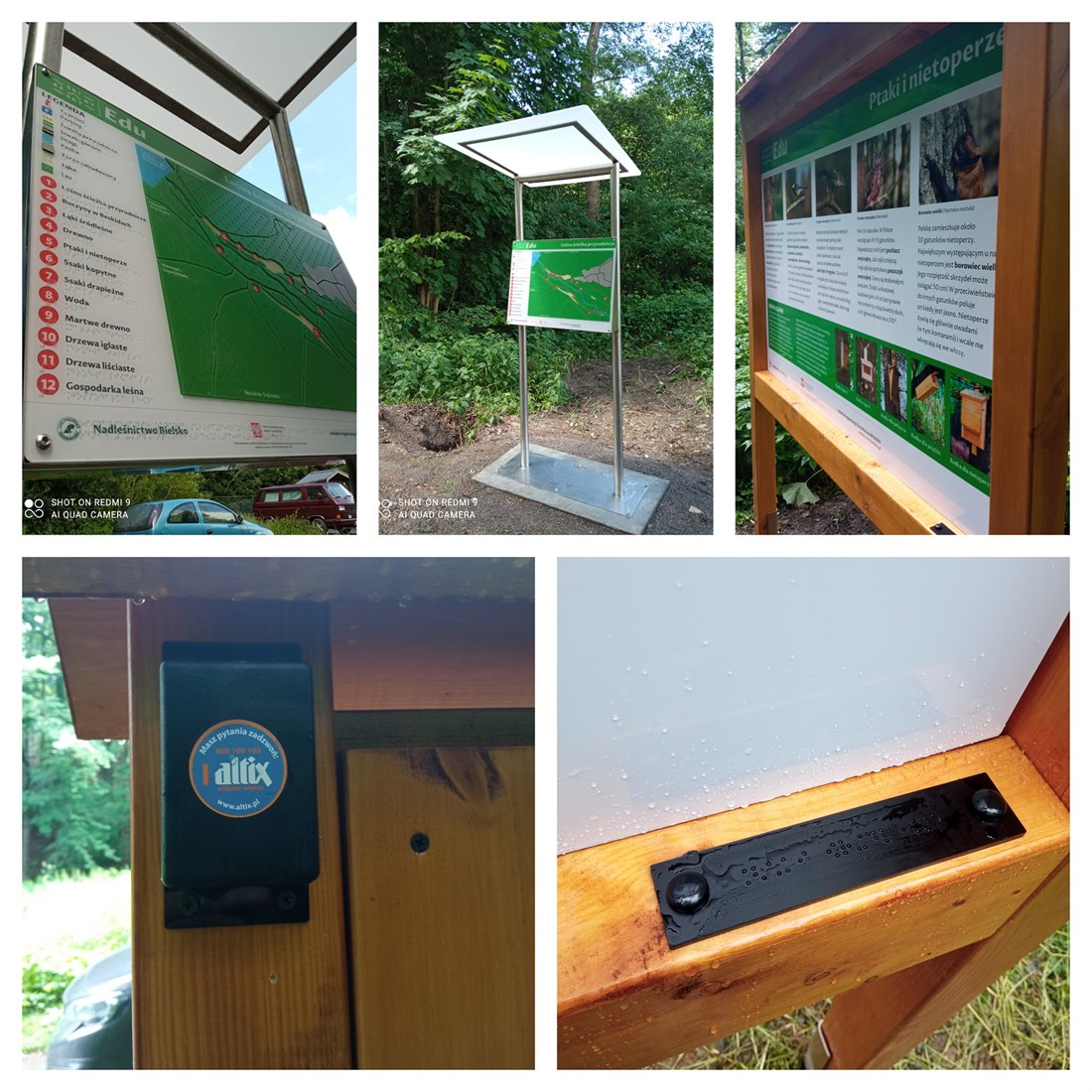 W skład realizacji wykonanej dla Lokalnej Organizacji Turystycznej Beskidy wchodzą: dotykowy plan informacyjny ze znacznikiem YourWay Plus, z kodem QR i NFC, 13 znaczników YourWay Beacon, 12 informacyjnych tabliczek brajlowskich na leśnej ścieżce przyrodniczej. Realizacja została wykonana w Nadleśnictwie Bielsko-Biała dla Lokalnej Organizacji Turystycznej Beskidy. Dotykowy plan informacyjny PMMA ma postać ergonomicznie pochylonej tablicy umieszczonej w pionie, na smukłym stojaku z chromowanej stali, posadowionym na metalowej płycie i zwieńczonym daszkiem z półprzezroczystego tworzywa. W kolorystyce planu przeważa zieleń i błękit z niewielkimi elementami w kolorze szarym i czerwonym. Na plan naniesiono lokalizacje 12 tablic edukacyjnych z informacjami dotyczącymi m.in. flory i fauny nadleśnictwa. Plan opatrzony jest legendą w czarnym druku i w brajlu, a także znacznikiem YourWay Plus. Na planie umieszczone są ponadto kody QR i NFC służące do pobrania na smartfony aplikacji YourWay. Istniejące już na ścieżce tablice edukacyjne zostały wyposażone w metalowe, czarne tabliczki brajlowskie z nazwami tych tablic. Ostatnimi elementami realizacji są znaczniki YourWay Beacon umieszczone w wodoszczelnych obudowach i zamontowane na stojakach tablic edukacyjnych. Jest ich 13. Po skomunikowaniu się z aplikacją YourWay na smartfonie zwiedzającego ścieżkę, informują o zawartości merytorycznej tych właśnie tablic edukacyjnych.
