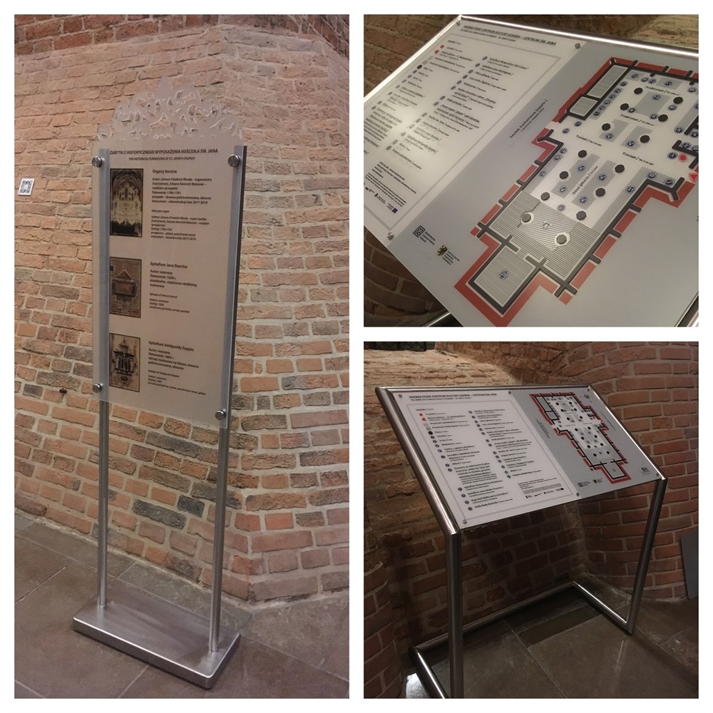 Dotykowy plan Nadbałtyckiego Centrum Kultury (kościół św. Jana) w Gdańsku ma postać tablicy z wypukłymi elementami i legendą w czarnym druku, i brajlu, z beaconem YourWay. Tablica została wykonana z tworzywa PMMA, zwanego szkłem organicznym, odpornego na warunki atmosferyczne, zadrapania i uszkodzenia. Kolorystyka to biel, szarość, czerwień i czerń. Tablica jest umieszczona w niszy ściennej, na eleganckim stojaku z połyskliwej stali ocynkowanej. Tablica została ergonomicznie pochylona w kierunku osoby ją oglądającej. Plan obiektu usytuowany jest w prawej części tablicy. W lewej jej części znajduje się legenda w brajlu i w czarnym druku. Realizacja obejmuje ponadto 7 pionowych tablic informacyjnych z opisami zabytków znajdujących się w kościele. Tablice są smukłe i niezwykle estetyczne, zawierają zdjęcie zabytku i jego krótki opis. Każda z nich umieszczona jest na stojaku ze stali ocynkowanej i posiada ozdobne zwieńczenie, każda została wyposażona w beacon YourWay, który po skomunikowaniu się z aplikacją YourWay na smartfonie zwiedzającego, podaje opis głosowy zabytku znajdującego się na tablicy i opisanego na niej w czarnym druku.