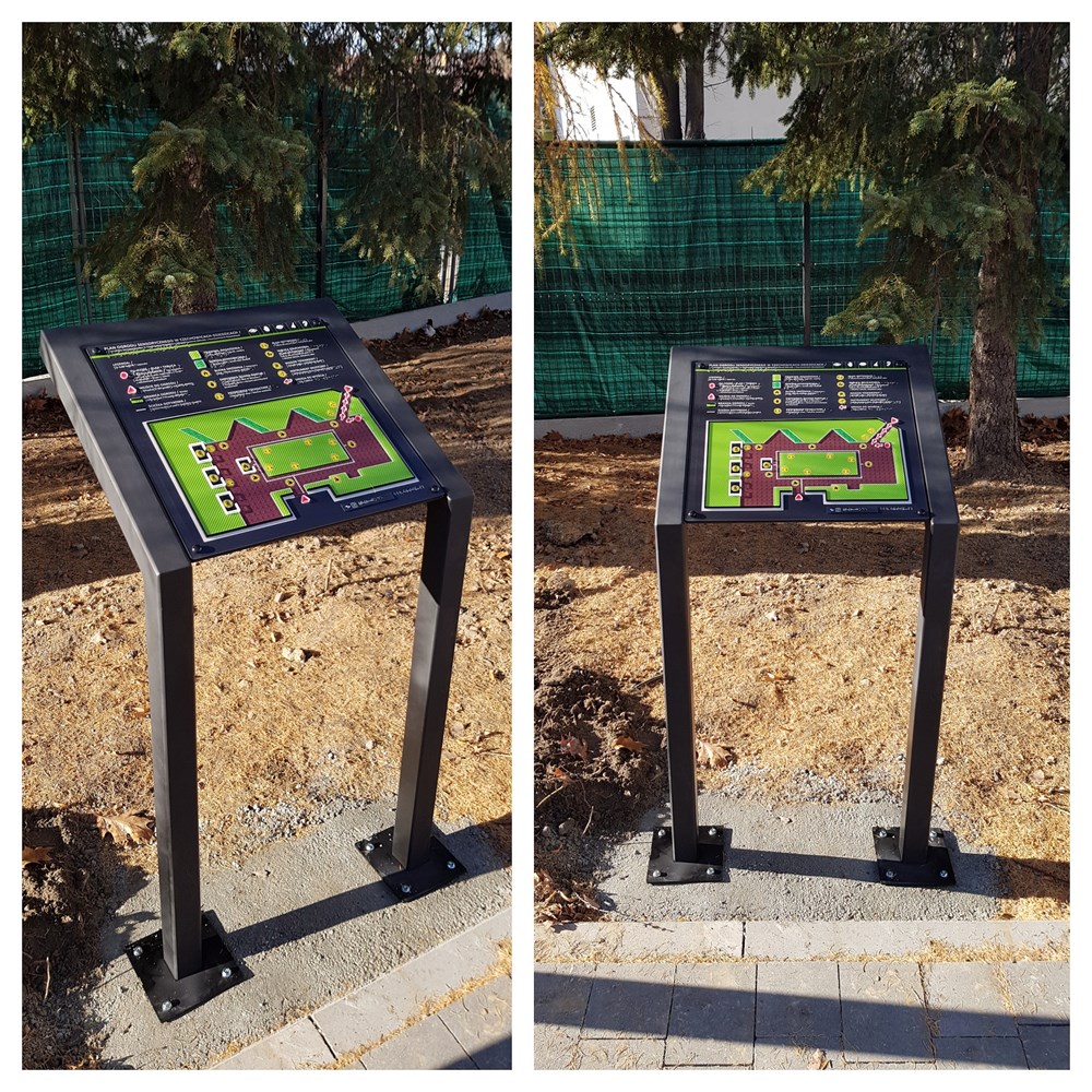 Realizacja obejmuje wielobarwny, dotykowy plan Ogrodu Sensorycznego w Czechowicach-Dziedzicach w postaci tablicy z wypukłymi elementami o wymiarach 1000 na 600 milimetrów, ze znacznikiem YourWay Beacon, osiem wielobarwnych, dotykowych planów obiektów znajdujących się w ogrodzie o wymiarach 600 na 540 milimetrów, ze znacznikami YourWay Beacon i tablicę z regulaminem korzystania z ogrodu, również ze znacznikiem YourWay Beacon. Wszystkie tablice zostały wykonane w całości z tworzywa PMMA, zwanego szkłem organicznym, odpornego na warunki atmosferyczne, zadrapania i uszkodzenia, wszystkie zawierają informacje w czarnym druku i w transparentnym brajlu. Tablice usytuowane są w różnych punktach ogrodu. Umieszczono je na dwunożnych stojakach ze stali malowanej proszkowo na kolor czarny. Tablice są ergonomicznie pochylone w kierunku osoby zapoznającej się z treściami na nich zawartymi. Plany obiektów usytuowane są w dolnej i środkowej części tablic. W części górnej znajdują się legendy