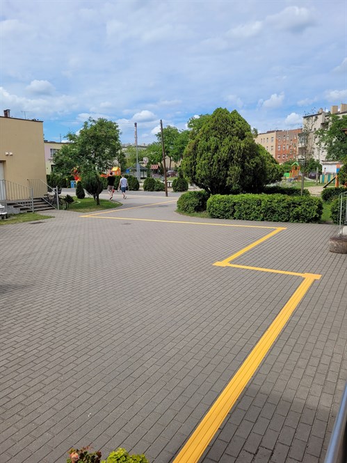 Realizacja w budynku Ośrodka Wsparcia i Testów w Bydgoszczy obejmuje 16 informacyjnych tabliczek w czarnym druku i w brajlu, z piktogramami, wewnątrz i na zewnątrz obiektu, metalową nakładkę brajlowską na poręcz schodów, 130 metrów bieżących żółtych, kontrastowych linii naprowadzających na zewnątrz budynku, a także kontrastowe pola uwagi. W skład realizacji wchodzi ponadto system przywoławczy Call-Hear.