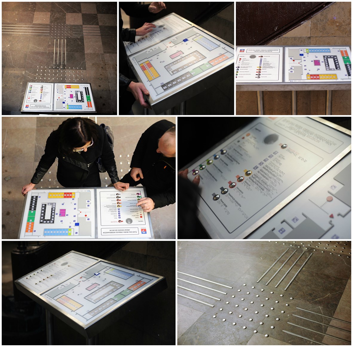 Realizacja obejmuje dotykowy, udźwiękowiony plan informacyjny, ścieżki naprowadzające i pola uwagi w budynku Urzędu Miasta Szczecin. Ergonomicznie pochylony, wielobarwny plan informacyjny ma postać tablicy umieszczonej na trójnożnym stojaku z chromowanej stali. Plan zajmuje prawą część tablicy, zaś rozbudowana legenda jej lewą część. Plan opisany jest w czarnym druku i w brajlu. Został wyposażony w metalowe przyciski, po których wciśnięciu użytkownik uzyskuje adekwatny, głosowy komunikat dotyczący informacji o budynku. W skład realizacji wchodzą ponadto ścieżki naprowadzające i pola uwagi.