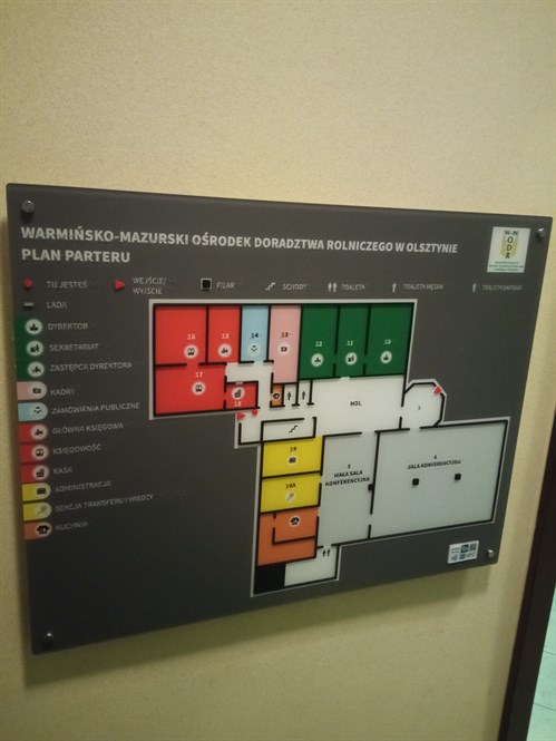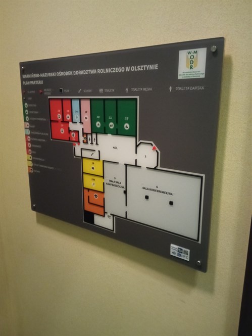 W budynku Warmińsko-Mazurskiego Ośrodka Doradztwa Rolniczego w Olsztynie wykonany został dotykowy plan informacyjny ze znacznikami YourWay Beacon i NFC. Plan ma postać tablicy wykonanej z tworzywa PMMA, usytuowanej w pionie, na ścianie, na dystansach. Na czarnym tle różnymi kolorami oznaczone zostały poszczególne strefy obiektu – na biało, na czerwono, na żółto, na zielono, na niebiesko i na różowo. Dotykowy plan opatrzony jest legendą w brajlu i w czarnym druku.