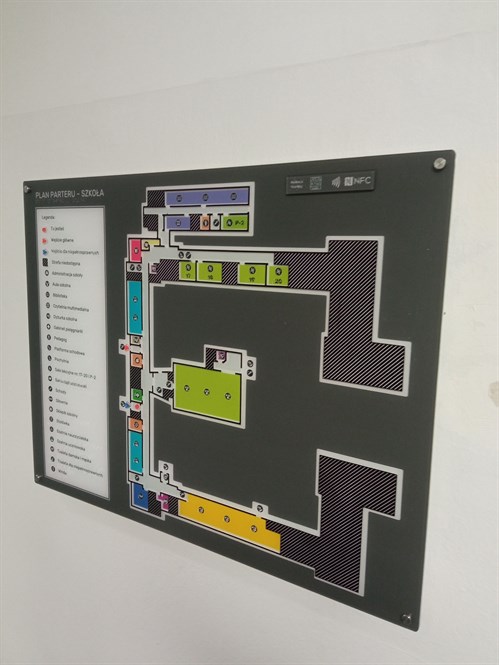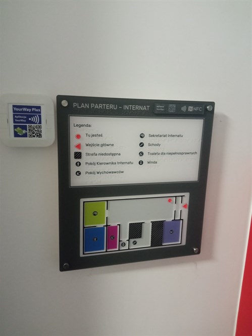 W ramach realizacji wykonano dwa dotykowe plany informacyjne budynku XIV Liceum Ogólnokształcącego im. Stanisława Staszica i przyszkolnego budynku internatu. Oba plany mają postać tablic z tworzywa PMMA wyposażonych w znaczniki YourWay Plus i NFC, i usytuowanych w pionie, na ścianach, na dystansach. Plany opatrzone są legendami w czarnym druku i w brajlu. Tła planów są czarne, legend – białe. Poszczególne strefy oznaczone są kolorami – biel, zieleń, czerwień, jasnoniebieski, ciemnoniebieski, żółty. Przed planami znajdują się kontrastowe pola uwagi w kolorze żółtym.