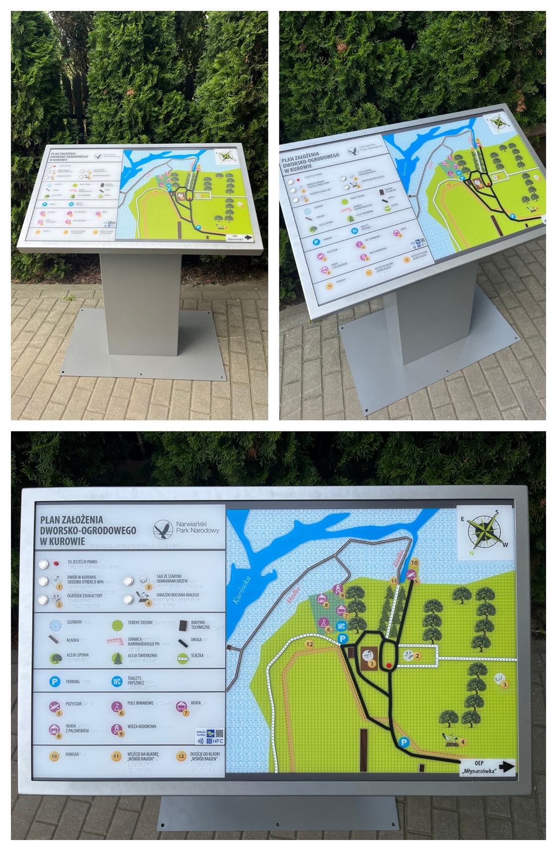 Dla Narwiańskiego Parku Narodowego powstał udźwiękowiony, tyflograficzny plan założenia dworsko-ogrodowego w Kurowie. Plan stoi na zewnątrz, w otoczeniu zieleni. Ma postać dużej tablicy umieszczonej na pochylonym ergonomicznie stojaku ze stali malowanej na kolor jasnoszary. Plan jest wielobarwny, utrzymany w pastelowych kolorach. Wyposażony jest w znacznik NFC kompatybilny z aplikacją YourWay.