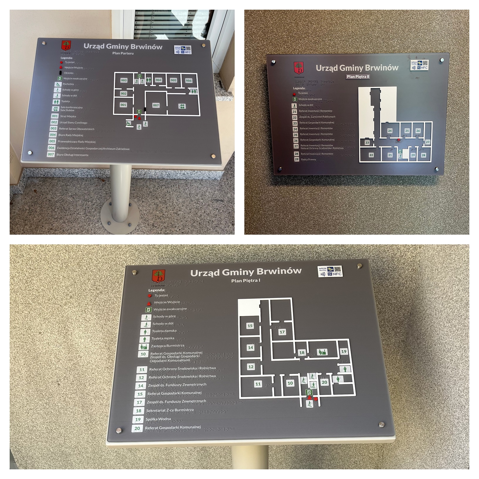 Specjaliści Altixu tym razem wykonali wykonano pięć tyflograficznych planów informacyjnych ze znacznikami YourWay Beacon, YourWay Plus i NFC dla Urzędu Gminy Brwinów. Plany zostały zamontowane w dwóch budynkach - przy Grodziskiej 12 i przy Kościuszki 4a.