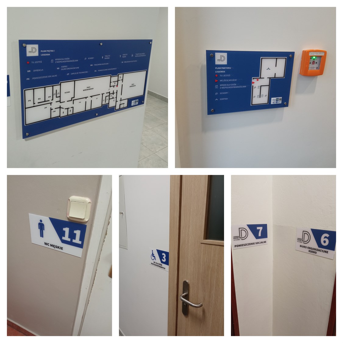 W budynku Centrum Kultury w Dobrej wykonane zostały dwa dotykowe plany informacyjne ze znacznikami YourWay Beacon i NFC, tabliczki informacyjne w brajlu i w czarnym na drzwi. Plany informacyjne parteru i pierwszego piętra budynku mają postać tablic z PMMA utrzymanych w niebiesko-biało-czarnej kolorystyce. Umieszczone są na ścianach, w pionie, na dystansach. Opatrzone zostały legendami w czarnym druku i w brajlu, a także znacznikami YourWay Beacon i NFC. Mniejsze tabliczki informacyjne z PMMA utrzymane są także w niebiesko-biało-czarnej kolorystyce. Zawierają napisy w brajlu i w czarnym druku oraz informacje wizualne, np. w przypadku oznakowania toalet.