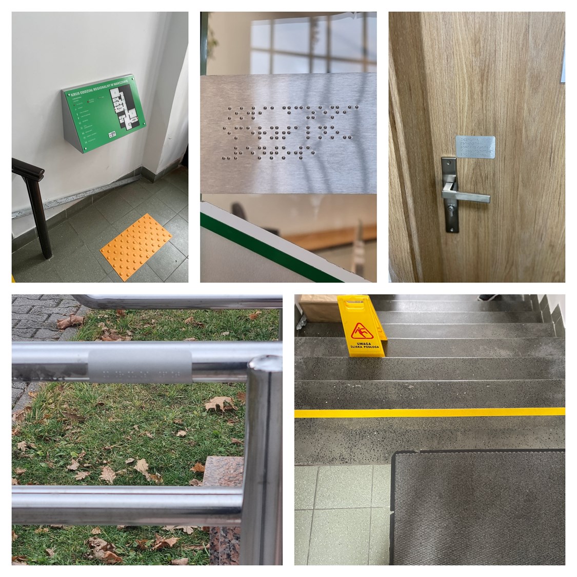 W ramach realizacji wykonano dotykowe plany informacyjne z tworzywa PMMA wyposażone w znaczniki YourWay Plus i NFC, metalowe tabliczki informacyjne w brajlu na drzwi, brajlowskie, metalowe tabliczki informacyjne na poręcze schodów, linie ostrzegawcze na schody i pola uwagi w siedzibach oddziałów Kasy Rolniczego Ubezpieczenia Społecznego w Warszawie i Radomiu. Plan w oddziale warszawskim KRUS został zamocowany na ścianie klatki schodowej, w taki sposób, by był ergonomicznie pochylony. Plan w oddziale radomskim także jest ergonomicznie pochylony w kierunku osoby go oglądającej, jednakże został umieszczony na stojaku ze stali malowanej proszkowo. Plany w obu oddziałach utrzymane są w tej samej kolorystyce – zieleń, czerń i biel z drobnymi elementami w kolorze czerwonym. Legendy planów opisane są w czarnym druku i w brajlu. W skład realizacji wchodzą ponadto metalowe tabliczki informacyjne na drzwi, opisane w brajlu. Zostały umieszczone nad klamkami. Na poręczach schodów zamontowano nakładki - brajlowskie, metalowe tabliczki informacyjne. Całości realizacji w obu oddziałach dopełniają linie ostrzegawcze na schodach w postaci kontrastowych pasów w kolorze żółtym i pola uwagi w tym samym kolorze.