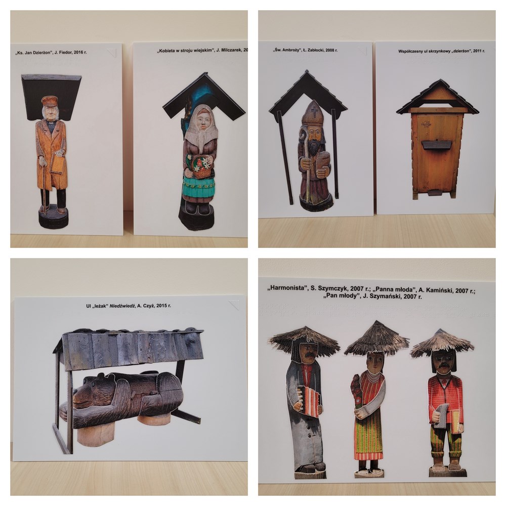 Realizacja obejmuje dotykowy plan rozmieszczenia eksponatów pszczelarskich na plenerowej, stałej ekspozycji w Muzeum im. Jana Dzierżona w Kluczborku i siedem dotykowych obrazów termoformowanych o tematyce pszczelarskiej. Tablica z planem została wykonana z tworzywa PMMA, zwanego szkłem organicznym, odpornego na warunki atmosferyczne, zadrapania i uszkodzenia. Kolorystyka to czerń, biel i zieleń z drobnymi elementami w kolorze czerwonym. Tablica zostanie umieszczona na postumencie wykonanym przez zleceniodawcę. Jest ona podzielona niemal przez pół. W prawej jej części znajduje się dotykowy plan rozmieszczenia eksponatów, zaś w lewej usytuowana jest kompleksowa, duża legenda w czarnym druku i w brajlu. W skład realizacji wchodzi ponadto siedem obrazów termoformowanych o tematyce pszczelarskiej. Można je zarówno oglądać, jak i badać dotykiem.