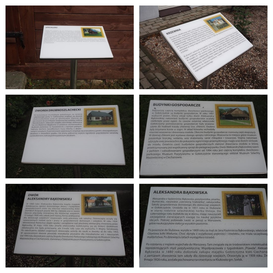 Realizacja w Muzeum Pozytywizmu w Gołotczyźnie obejmuje dotykowy plan informacyjny placówki oraz tabliczki informacyjne z brajlowskimi i czarnodrukowymi opisami i rycinami obiektów muzealnych. Plan informacyjny ma postać tablicy wspartej na delikatnym, drewnianym stojaku. Tablica utrzymana jest w kolorystyce nawiązującej do otaczającej zieleni i znajduje się w pozycji pionowej. Dotykowy plan informacyjny usytuowany jest w jej prawej części, zaś czarnodrukowa i brajlowska legenda w lewej. W skład realizacji wchodzą ponadto ergonomicznie pochylone tabliczki informacyjne z opisami i rycinami obiektów muzealnych. Opisy zostały wykonane w czarnym druku i w brajlu. Tabliczki umieszczone są na estetycznych, jednonożnych stojakach z chromowanej stali.