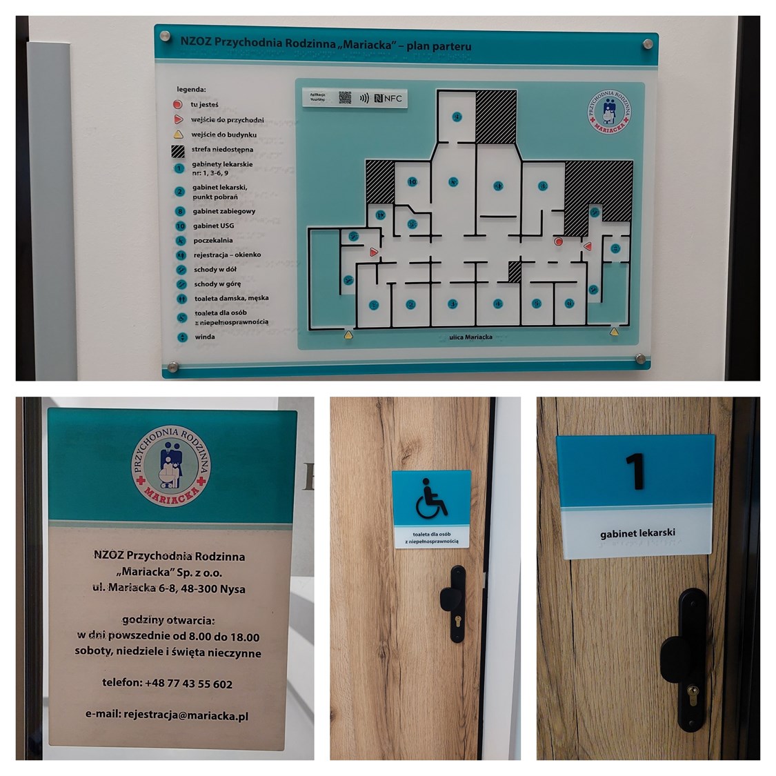 W Niepublicznym Zakładzie Opieki Zdrowotnej „Mariacka” w Nysie wykonano dotykowy plan informacyjny ze znacznikami YourWay Beacon i NFC, tabliczki informacyjne w czarnym druku i w brajlu, ponadto nad drzwiami przychodni umieszczono znacznik YourWay Beacon.