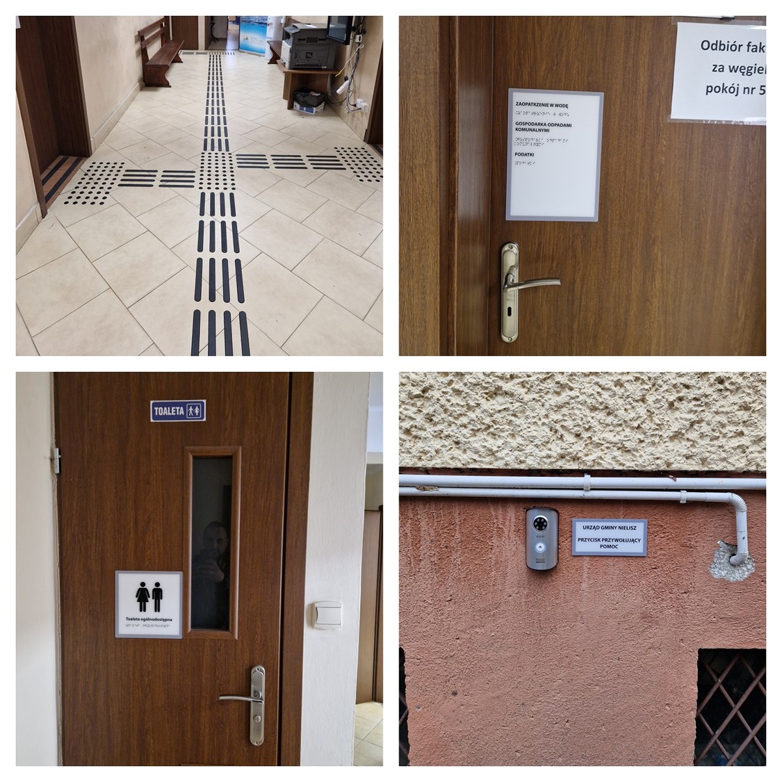 Dla Urzędu Gminy Nielisz wykonano 35 biało-czarnych tabliczek informacyjnych z tworzywa PMMA, z napisami w czarnym druku i w brajlu, część z nich zawiera ponadto piktogramy. Podobna ilość tabliczek została wykonana z metalu. Zawierają one informacje w brajlu. Informacje w brajlu zawierają także nakładki na poręcze schodów. Jest ich sześć.