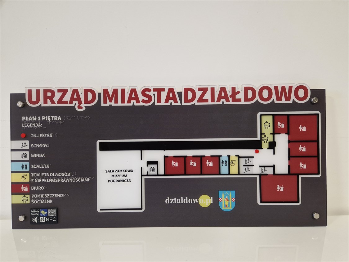 Dla Urzędu Miasta Działdowo wykonany został dotykowy plan informacyjny ze znacznikami YourWay Beacon i NFC. Ponadto w budynku zainstalowano trzy dodatkowe znaczniki YourWay Beacon.