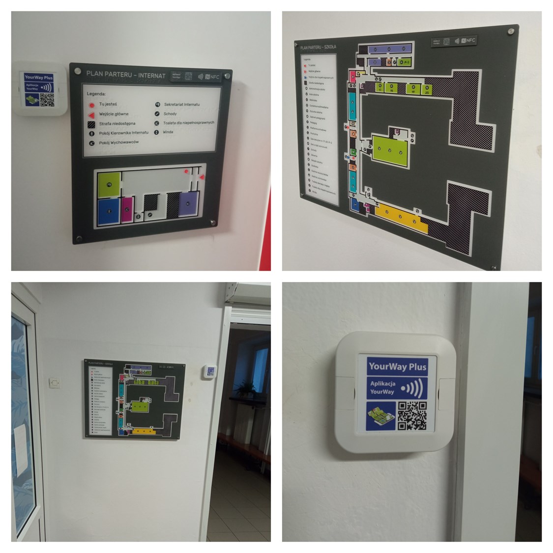 W ramach realizacji wykonano dwa dotykowe plany informacyjne budynku XIV Liceum Ogólnokształcącego im. Stanisława Staszica i przyszkolnego budynku internatu. Oba plany mają postać tablic z tworzywa PMMA wyposażonych w znaczniki YourWay Plus i NFC, i usytuowanych w pionie, na ścianach, na dystansach. Plany opatrzone są legendami w czarnym druku i w brajlu. Tła planów są czarne, legend – białe. Poszczególne strefy oznaczone są kolorami – biel, zieleń, czerwień, jasnoniebieski, ciemnoniebieski, żółty. Przed planami znajdują się kontrastowe pola uwagi w kolorze żółtym.