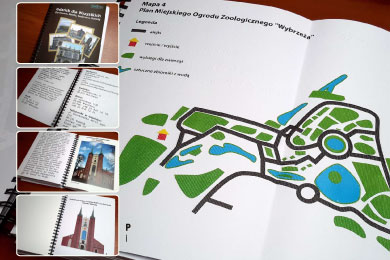 Mapy, ryciny oraz schematy stanowią znaczną pomoc dla osób widzących. Niewidomi również nie muszą z nich rezygnować. Dotyczy to zarówno grafik stanowiących część publikacji, jak również kart luzem. Wiele przewodników, które drukowaliśmy, oprócz formy opisowej stara się przedstawić czytelnikom informacje za pomocą grafik dotykowych. Mogą to być schematy, plany, ale także ryciny budynków czy przedstawienia zwierząt, przedmiotów czy obrazów.