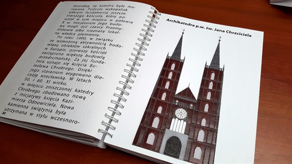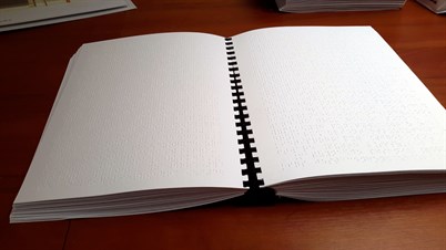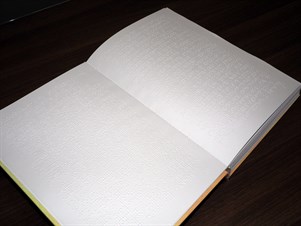 Nasze publikacje możemy podzielić na dwa główne rodzaje: druk brajlowski oraz tak zwany druk transparentny. Ten drugi skierowany jest do znacznie szerszego grona odbiorców - nie tylko osób niewidomych, ale także słabowidzących. Druk transparentny polega na przygotowaniu tekstu drukiem powiększonym, na który następnie 1:1 nakładamy zapis brajlowski. Dzięki temu każdy wers publikacji przekazuje - niezależnie od sposobu odczytu (wzrokiem czy dotykiem) - dokładnie tę samą informację.