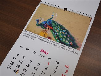 Oferujemy wieszane kalendarze brajlowskie formatu A3. Każda ze stron dzieli się na dwie części: górną, ilustracyjną, gdzie może znaleźć się grafika wypukła lub opis w brajlu w miejscu grafiki dla widzących, oraz dolną z tabelą dat.